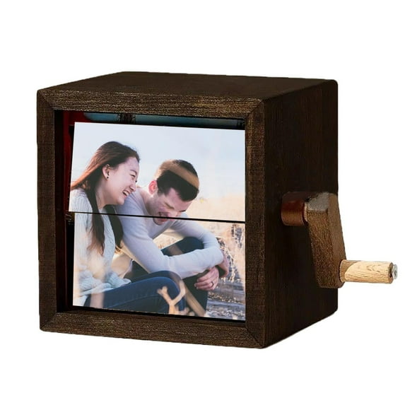 SXcggal One Custom Photo Hand Cranked Photo Album [ Gifts] Flipbook Frame Machine Table Decoration Black Walnut Valentines Day For Her/Him Practical Multifunctional Artistic Desktop DecorationDelivery, in 5+ days