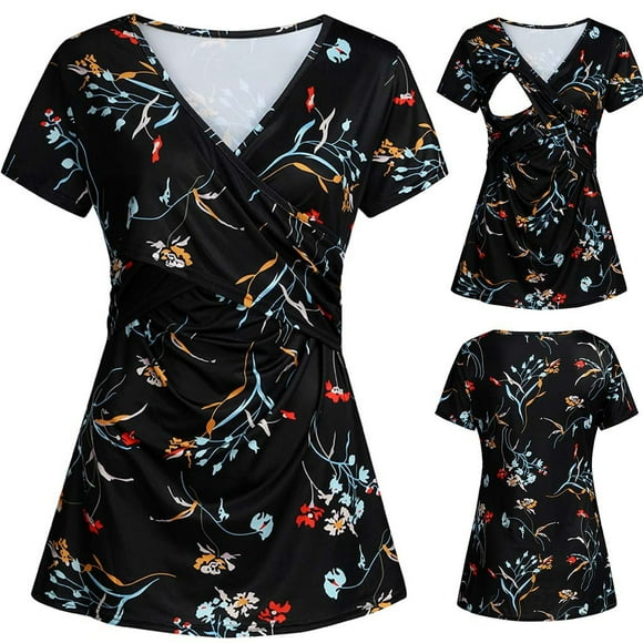 DPTALR Women's Short Sleeve Nursing Floral Print Tops for Breastfeeding Blouse Shirt