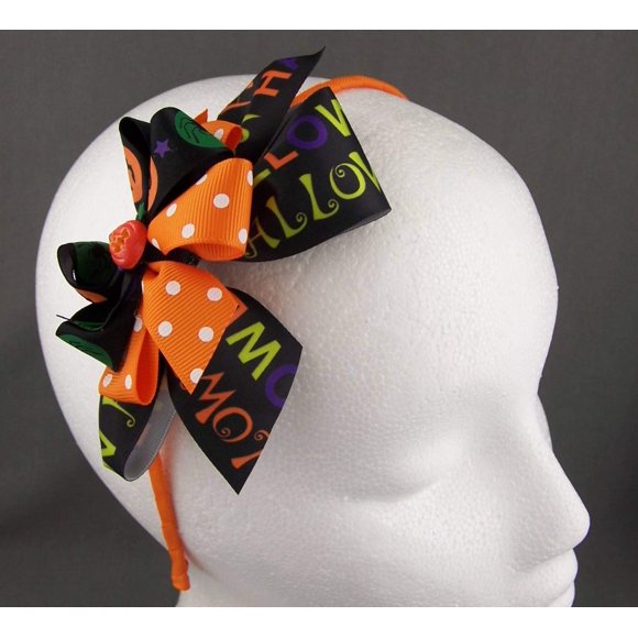 Orange Black Halloween Bow Pumpkin Ribbon Wrapped Thin Skinny Headband Hair Band Headbands for Women
