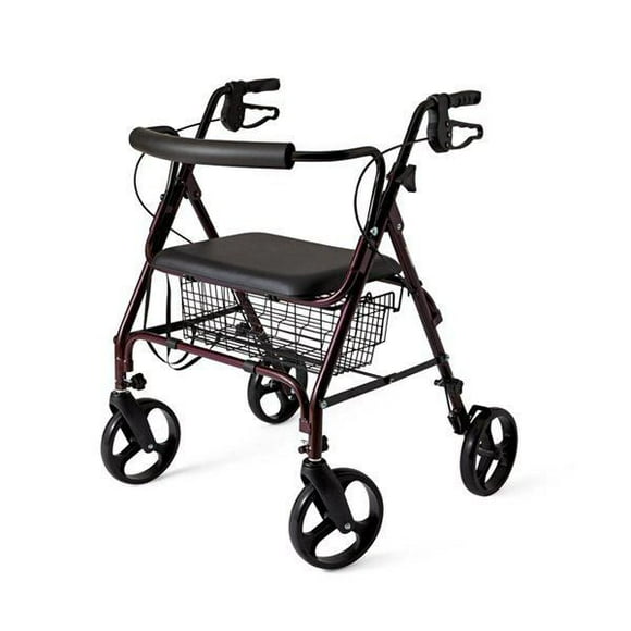 Medline Burgundy Fold-Up/Easy Storage Standard Bariatric Heavy-Duty Rollator Walker 500-lb Weight Capacity