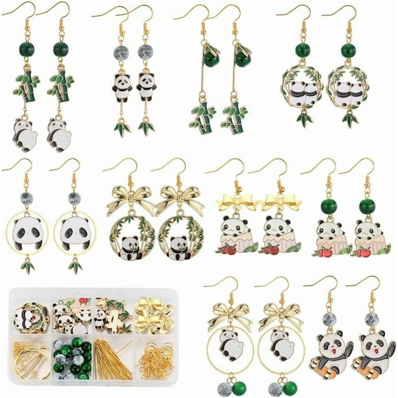 1 Box DIY 10 Pairs Panda Charms Cute Enamel Animal Pendants Women Dangle Earrings Making Kit Bear Bamboo Cake Round Glass Beads Bowknot Linking Connector Charms for Jewelry Making KitsFree delivery, in 5+ days