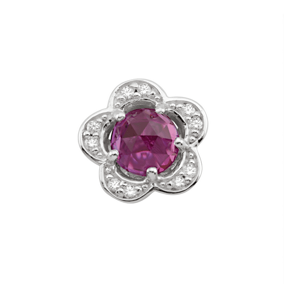 Persona by Jewlster: Premium Sterling Silver Double-Sided (Oct) Pink Tourmaline CZ Flower Charm - Universal Fit for Persona, Pandora & European Bracelets