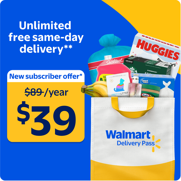 *Offer valid for new Delivery Pass customers who sign up for an annual pass between April 2nd – April 29th. Subject to change at any time. No price adjustments on previous subscriptions. See Walmart.ca for terms and conditions. **An order must be placed by 3 pm to receive same-day delivery. We offer free delivery over $35 (before taxes & fees) excluding select locations in Canada.