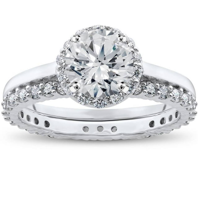 1 ct Diamond Madelyn Halo Engagement Ring Setting & Matching Eternity Ring