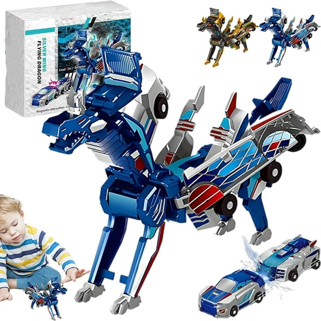 2 in 1 Collision Transforming Dinosaur Car Toy, Magnetic Cars Transform into Dinosaurs, Fun Collision Cars with Collision Transformation,for Boys and Girls