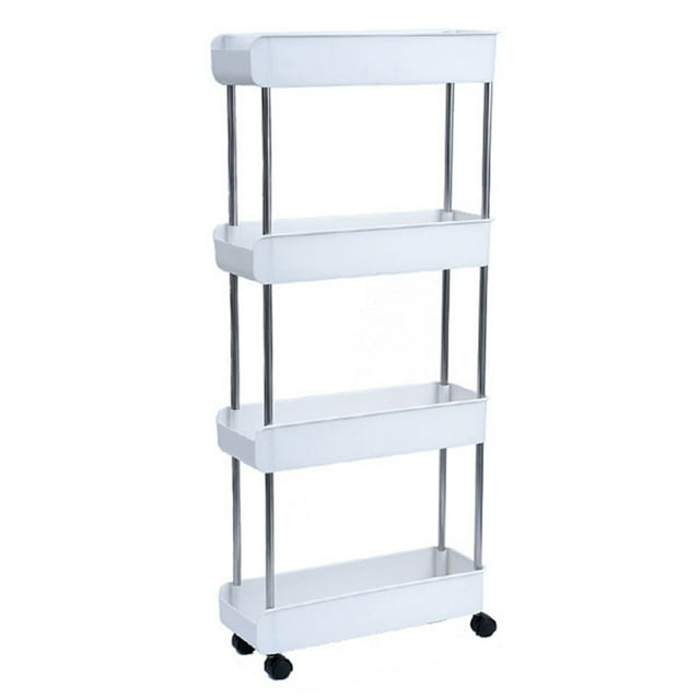 4-Tier Rolling Multipurpose Cart with Wheel Hook Multifunctional Storage Organizer Portable Vertical Shelf Serving Cart for Kitchen Bathroom Office