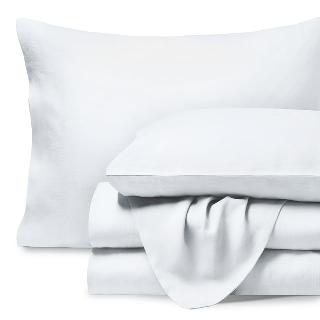 Bare Home Linen Sheet Set - Deep Pocket - Breathable - 3-Pieces - Twin XL, White