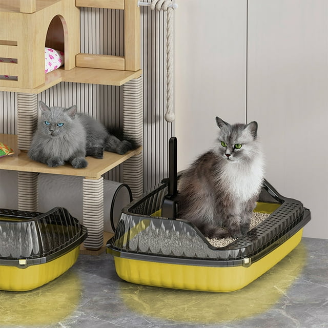 Cagogo Semi Enclosed Cat Litter Box, High Sided Splash Proof Litter Box for Kittens Adult Cats, Large Plastic Litter Box with Scoop, Odor Control Litter Box for Indoor Cats Home Use