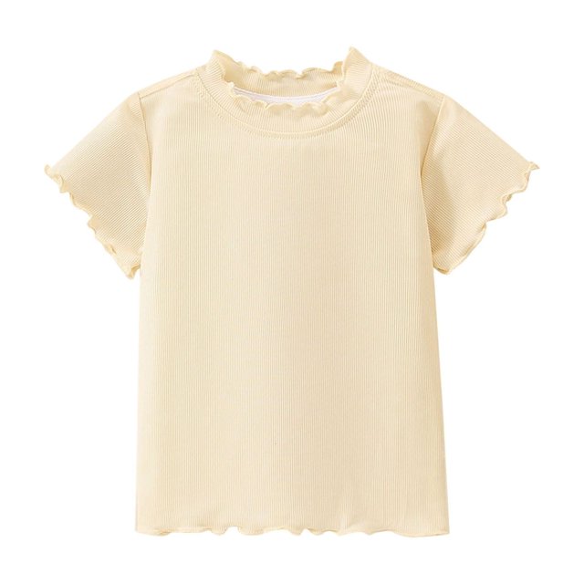 Cinvoph Summer T-Shirts for Girls Ruffle Crewneck Short Sleeve Tees Casual Solid Stripe Tops