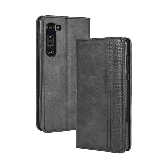 Compatible with Motorola Moto Edge Case Magnetic Closure Vintage Pattern PU Leather Wallet Cover with Card Slots-Black