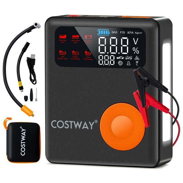 Costway Jump Starter with Air Compressor 150PSI Digital Tire Inflator LED Screen Portable