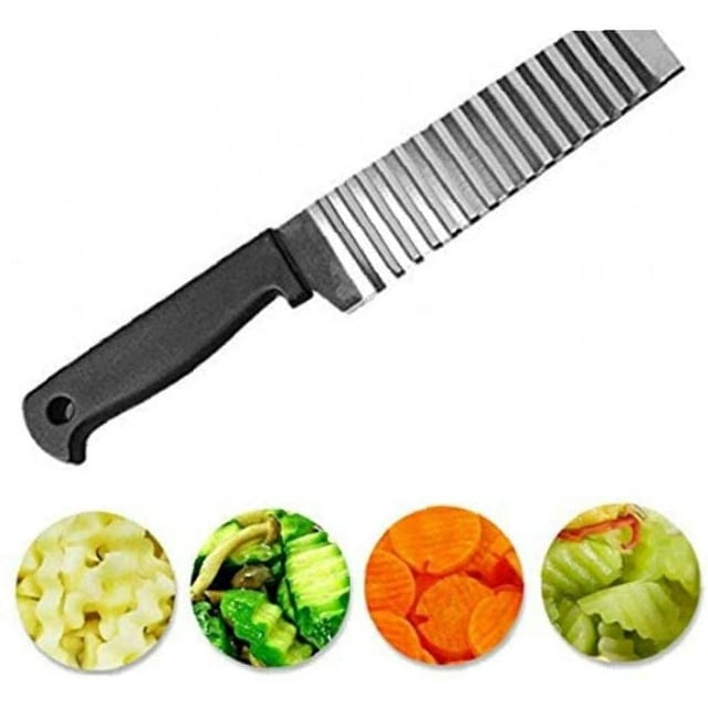 Crinkle Cutter, Wavy Potato Cutter, Wavy Crinkle Knife Set, Stainless Steel Blade Kitchen Vegetable Strips Corrugated Cutter