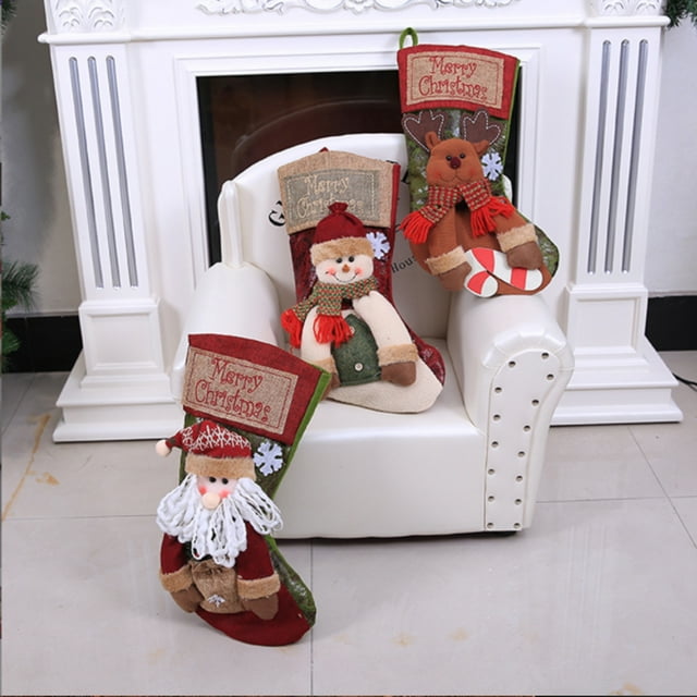 Cute Christmas Stocking Lints Portable Hanging Xmas Themed Replacement Decorative Washable Stylish Kids Gift Storage Bag Santa Clausipipipip