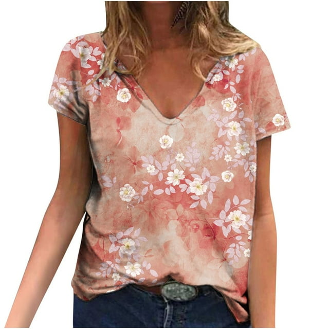 DEELLEEO Womens Summer Print Blouse Tees Short Sleeve T-Shirts Tops