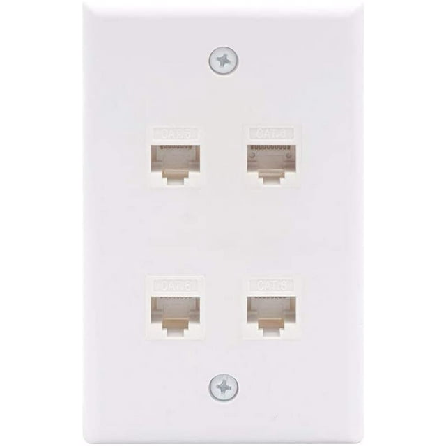 Ethernet Wall Plate 4 Port (UL Listed) with Cat6 RJ45 Keystone Couplers Female to Female, RJ45 Inline Wall Jack Outlet, White