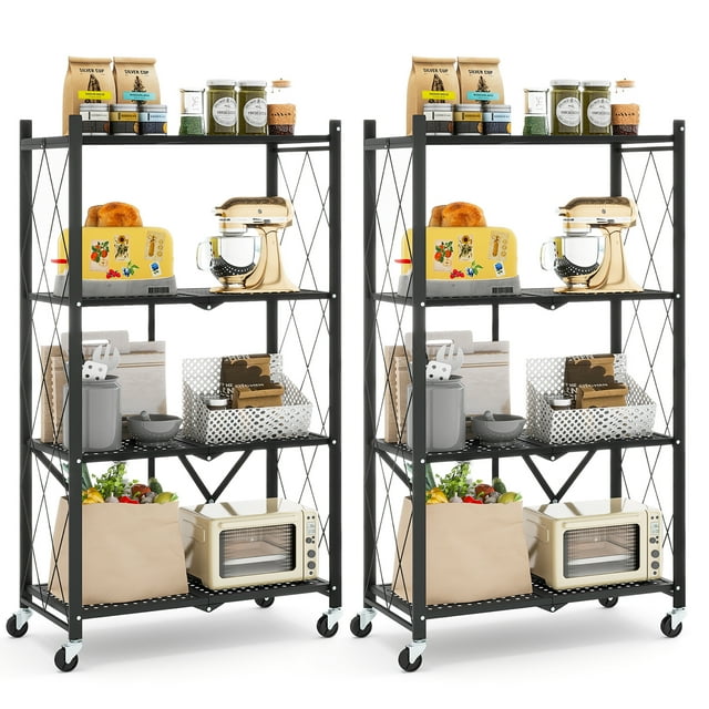 Gymax 2PCS 4-tier Foldable Storage Shelving Unit w/4 Universal Wheels for Kitchen