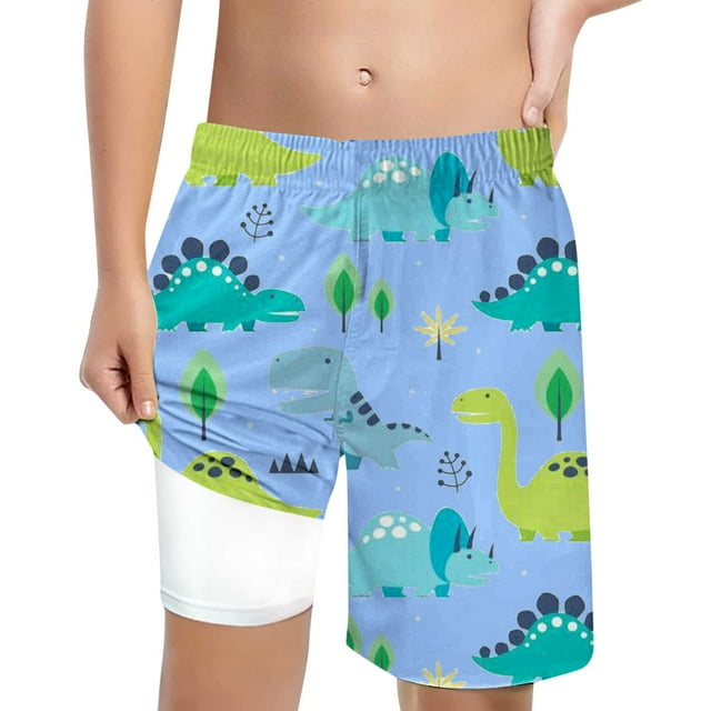 Hiiyo Little Boys Cartoon Dinosaur Print Compression Liner Swim Trunks Beach Shorts