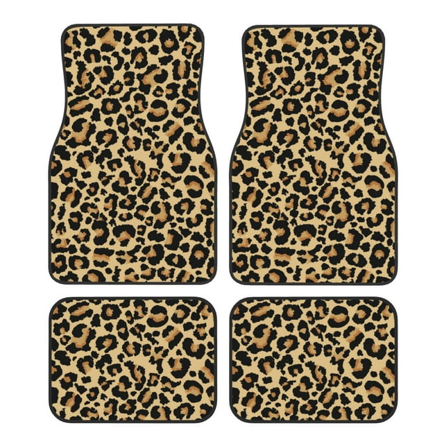 Honeii Leopard Print Print Car Foot Mat Four-Piece Set - Front & Rear Universal Car Floor Mats for SUVs, Trucks, Sedans
