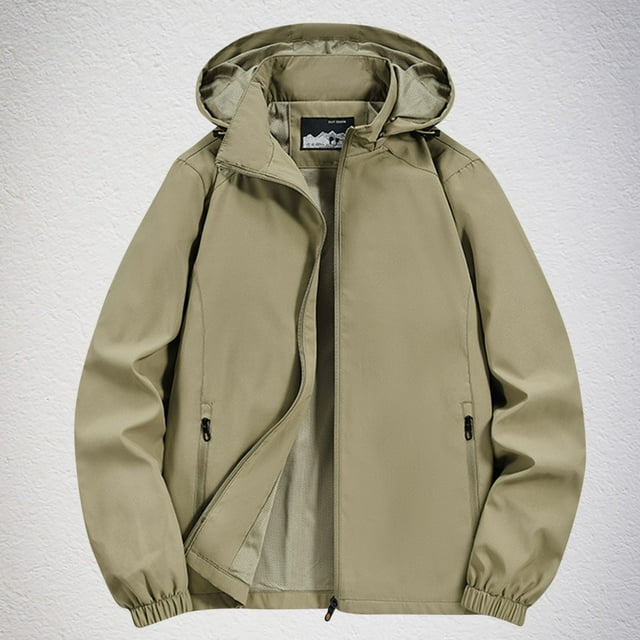 LOVZFMLL Jackets for Men's Solid Color Velvet Winter Windproof Hooded Long Sleeved Pocket