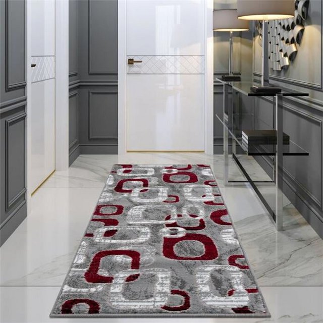 Lbaiet SL425R26 Red Emberly Geometric 2 x 6 ft. Runner Rug, Red, Gray & White