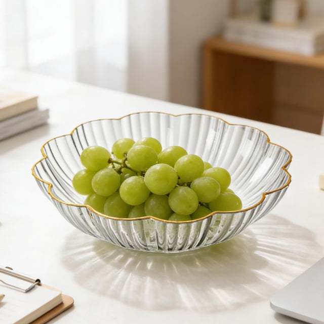 Luxurious Crystal Fruit Bowl for Coffee Table - Stackable Snack Plates with Gold Trim for Living Room Decor