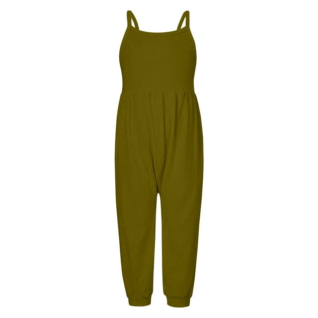 MIASHUI Girls Jumpsuits Sleeveless Rompers Casual Loose Long Pants with Pockets,Army Green,3-4 Years