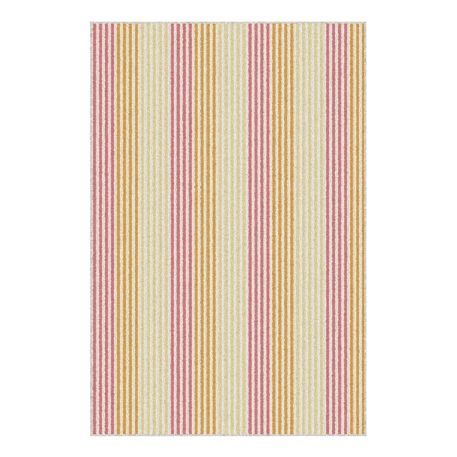 Mainstays Kids Indoor Pink and Yellow Striped Machine Tufted Accent Rug, 28.8" x 45", Machine Washable, Non-Skid Backing