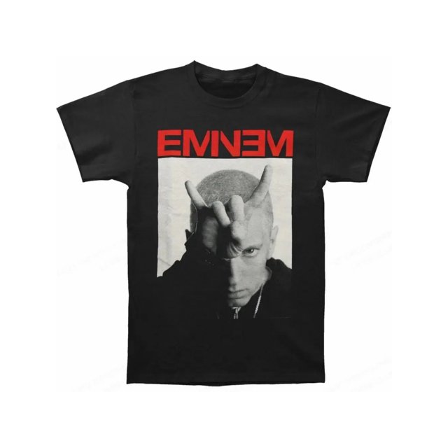 Men's Eminem Graphic Official Rap Icon Design with Signature Pose & EMN Lettering Printed pattern short-sleeved shirt