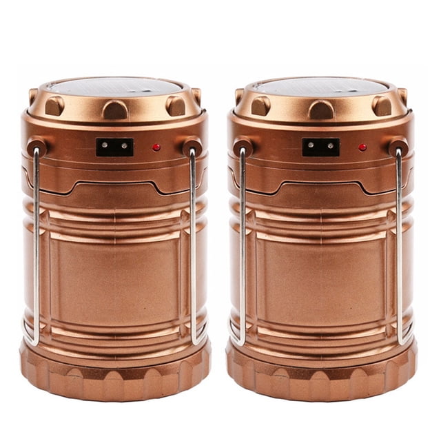 Miangastore 2PCS LED Solar Charging Camping Camping Light Outdoor Portable Telescopic Emergency Lighting No Battery Included(Brass)