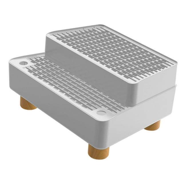 Milaget Automatic Cat Litter Box Ramp 2 Steps Waterproof Pad Mat with Non Slip Feet Leakproof Cat Litter Stair for Small Elderly Cats Light Grey