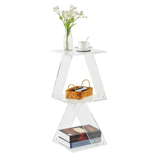 Modern Clear Acrylic 3-Tier Ladder Bookshelf – Wall-Mounted Floating Display & Storage Shelf – Space-Saving Multipurpose Organizer for Small Spaces, Living Room, Size: 11.8 x 11.8 x 27.4 inipipip