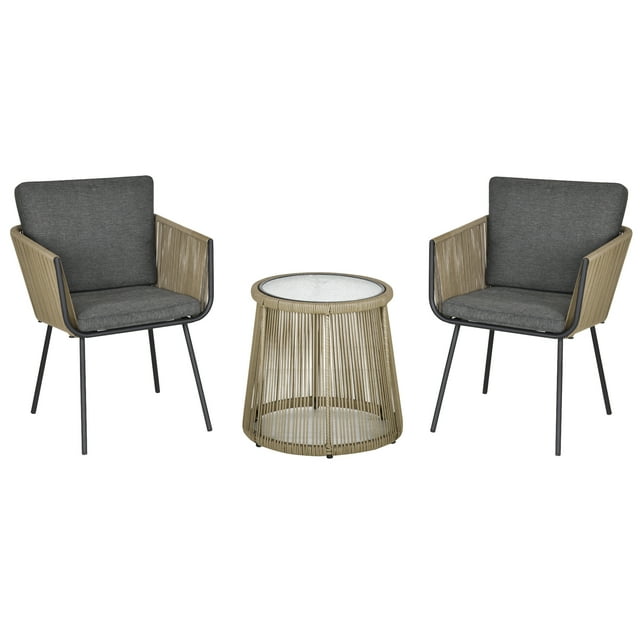 Outsunny 3 Pieces Wicker Patio Furniture Set, Rattan Bistro Set, Grey