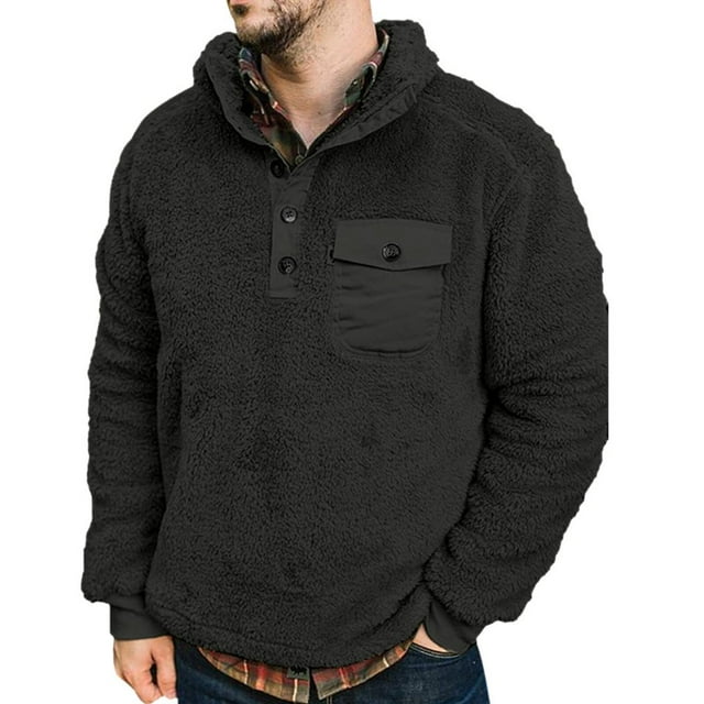 PENGXIANG Men‘s Winter Fleece Pullover Sweatshirt Jacket Button Collar Warm Sweater Coat
