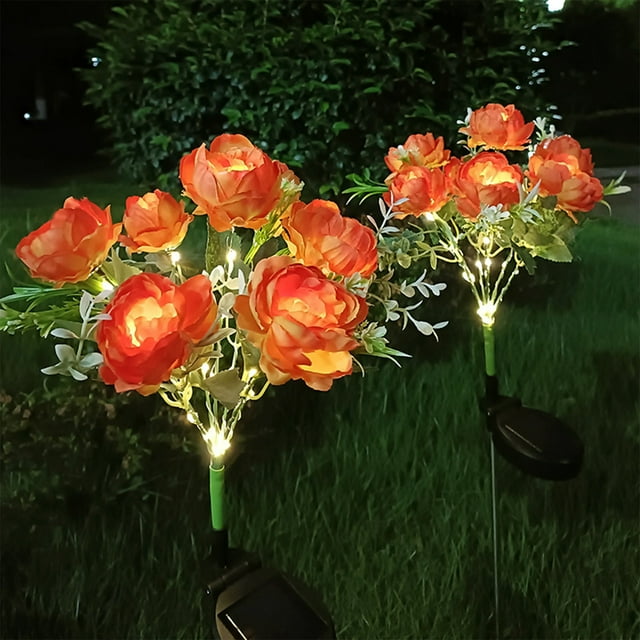 PRETXORVE Outdoor Solar Peony 7 Heads Simulation Waterproof Lights For Garden In Paths Yards And Terraces