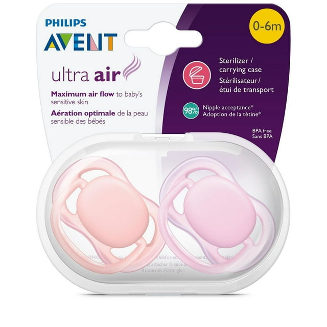 Philips Avent Ultra Air Pacifier, 0-6 months, pink/peach, 2 pack, SCF245/20
