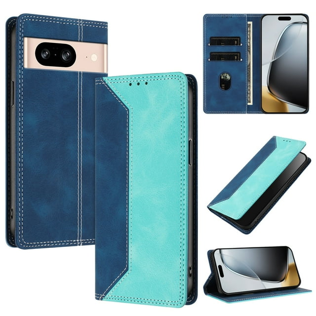 Phone Case for Google Pixel 8 FOXDOCK Premium Leather,Creative Dual-Color Cover with Card Slot,Shockproof