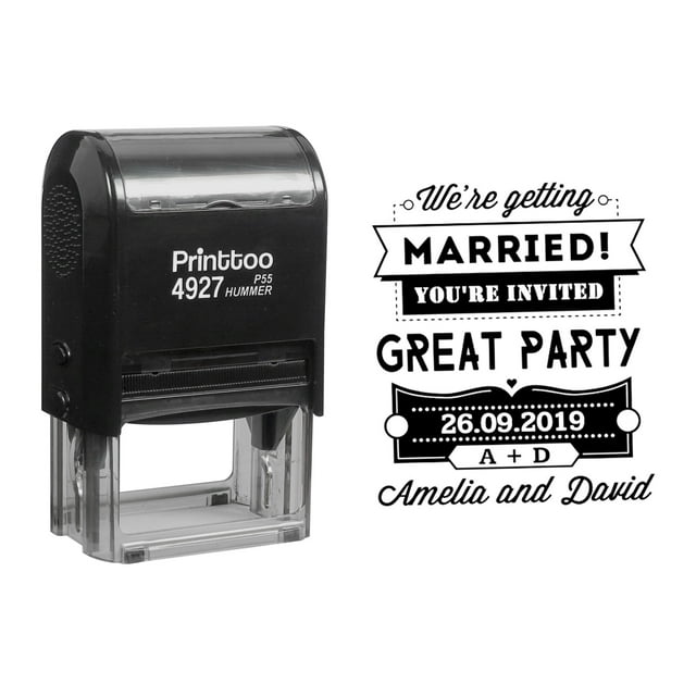 Printtoo Personalized Black Self Inking Getting Married Wedding Favor Stamp Custom Rubber Stamper-60 x 40 mm