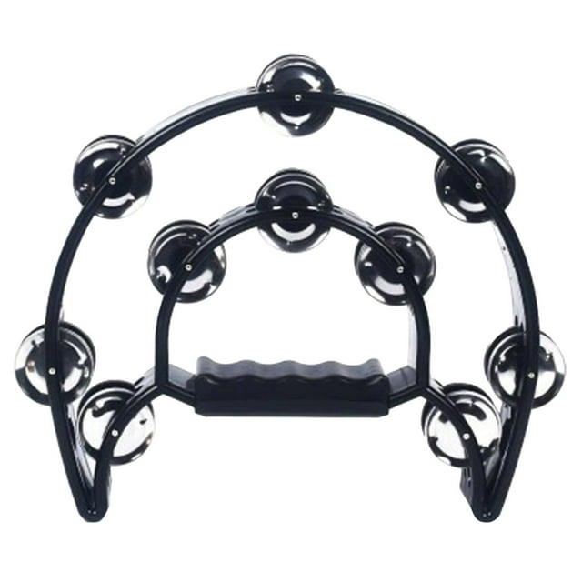 Product Toy instrument1 - Tambourine Metal Half Moon Musical Instrument with Ergonomic Handle Grip for Adults - Double Metal Hand Held Percussion Accessory