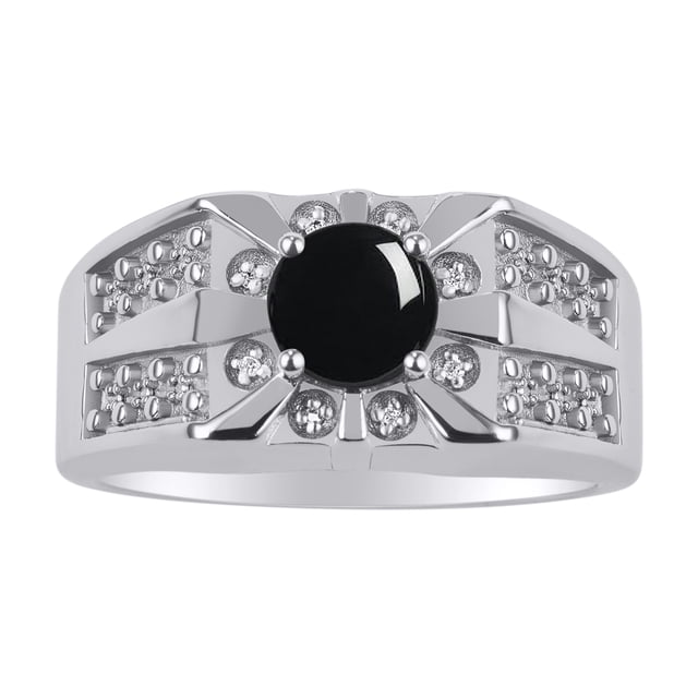 RYLOS Men's Rings Sterling Silver Designer Starburst 7MM Round Gemstone & Diamond Ring Cabochon Onyx October Size 11