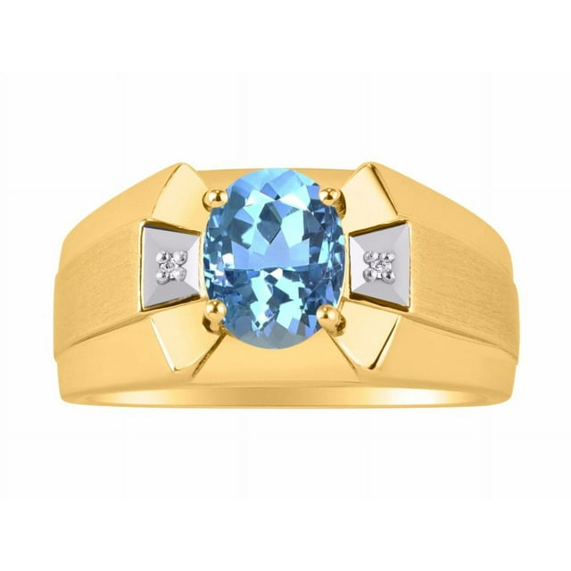 RYLOS Men's Rings Yellow Gold Plated Silver Rings Classic Designer 9X7MM Gemstone & Diamond Ring Blue Topaz December Birthstone Ring Size 11