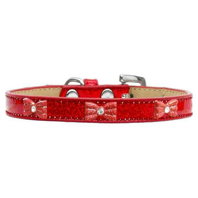 Red Glitter Bow Widget Dog Collar Red Ice Cream Size 12