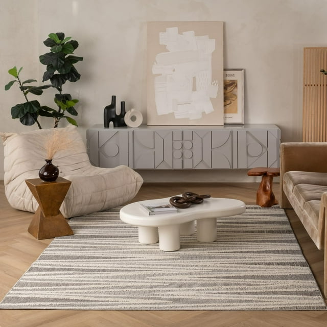 Rug Branch Hogar Abstract Indoor Outdoor Area Rug, Grey Cream, Modern - Living Room, Bedroom, Dining Room, and Kitchen