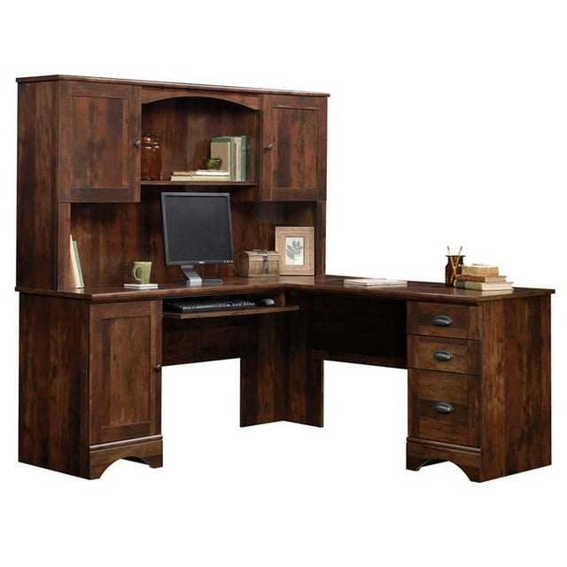 Sauder Harbor View Corner Computer Desk with Hutch in Curado Cherry