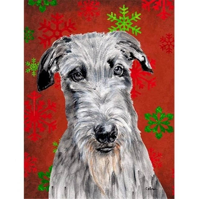 Scottish Deerhound Red Snowflakes Holiday Flag Garden Size