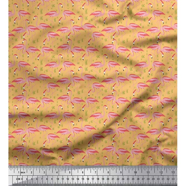 Soimoi Moss Georgette Fabric Grass & Flamingo Bird Print Fabric by The Yard 42 Inch Wide