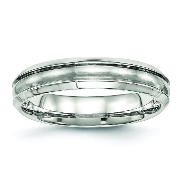 Stainless Steel Brushed and Polished Ridged 5mm Band Ring 6 Size