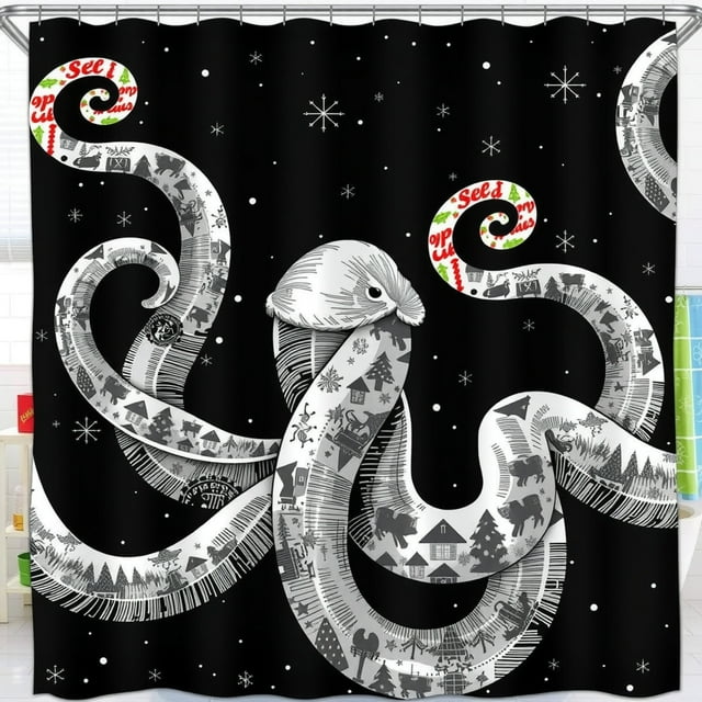 Stylish Black Shower Curtain with Whimsical Octopus Design & Christmas Theme
