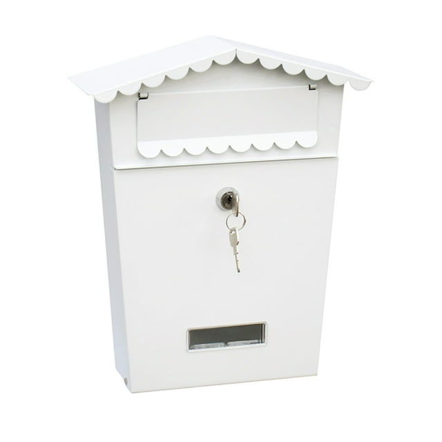 Tnarru Mailbox Wall-mounted Mail Box Decorative Vintage Drop Box Magazines Case Holder with Install Screws - Whiteipip