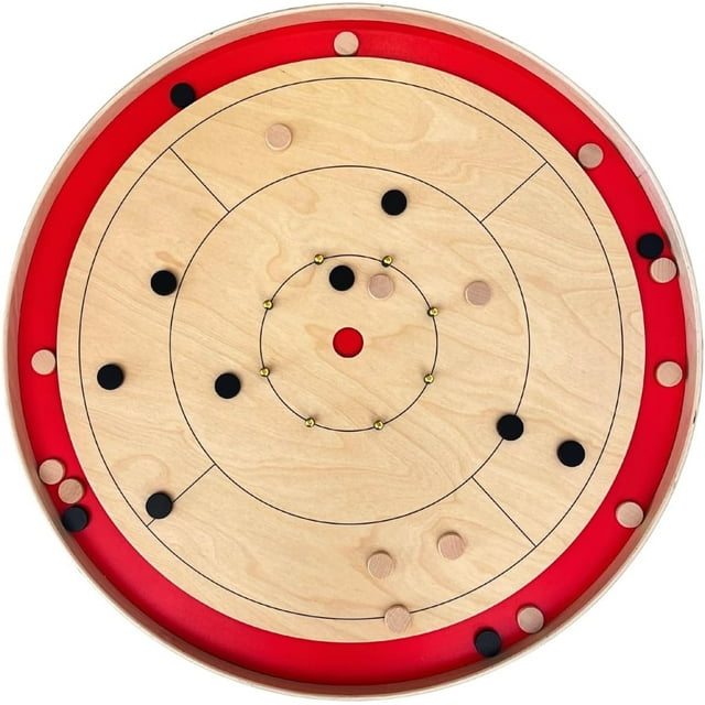 Tradeopia Round Crokinole Board Game, Classic Tabletop Game with 26 Discs, Metal Bumpers, Fast Powder & Tin, Traditional Canadian Family Game for All Ages