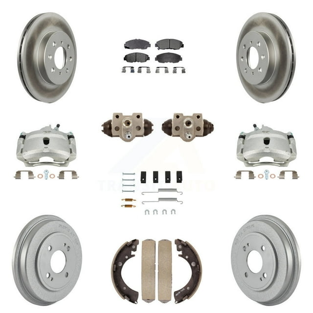 Transit Auto Front Rear Disc Brake Caliper Coated Rotors Drums Semi-Metallic Pads Shoes Wheel Cylinders and Hardware Kit (11Pc) for Car Honda Civic KCG-100385P